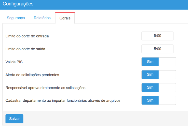Define até quantas horas antes ou depois da jornada o sistema deve considerar uma marcação como válida para o mesmo dia de trabalho. O padrão é 5 horas para entrada e saída. Essa configuração evita que marcações feitas muito cedo ou muito tarde sejam associadas ao dia incorreto.