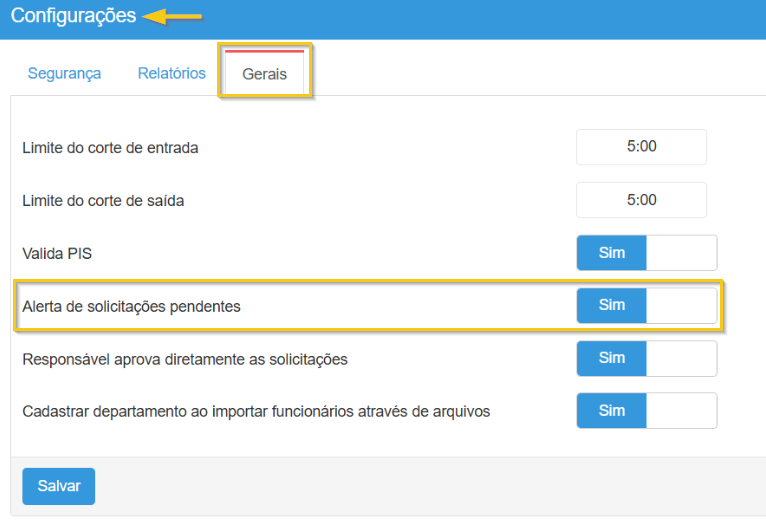 Ao habilitar esta opção, o sistema exibirá em “cadastro de usuários” o campo “Alerta de solicitações pendentes”, permitindo definir quais usuários devem ser notificados por e-mail quando houver solicitações pendentes.
