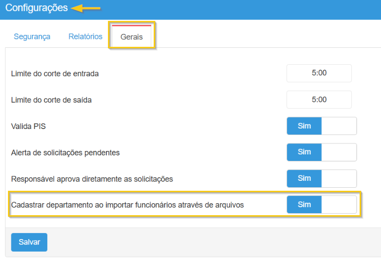 Caso a opção não esteja habilitada, e o arquivo de importação contiver funcionários vinculados a departamentos que ainda não existem no sistema, o processo de importação será interrompido até que os departamentos sejam previamente cadastrados.
