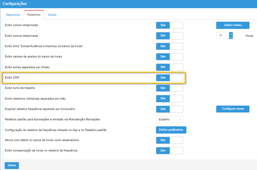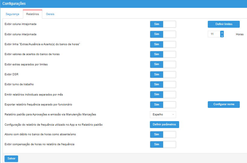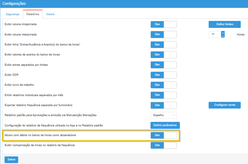 É importante destacar que essa configuração não se aplica aos relatórios de Absenteísmo, Ocorrências nem a listagem.