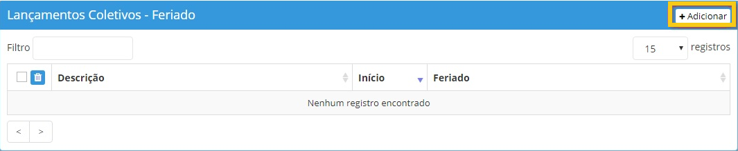 Para incluir um feriado coletivo clique no botão “Adicionar“.