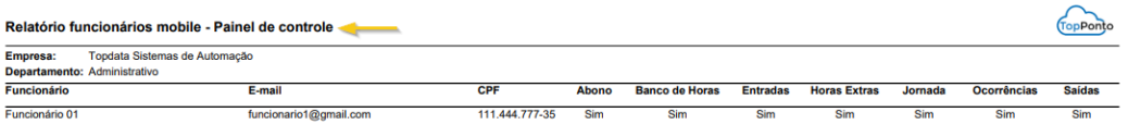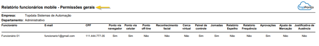 Exibe especificamente as permissões relacionadas ao Painel de Controle do App, mostrando quais informações o funcionário tem acesso dentro do aplicativo. Esse tipo de relatório deve ser utilizado quando a necessidade for validar acessos e restrições no Painel de Controle.