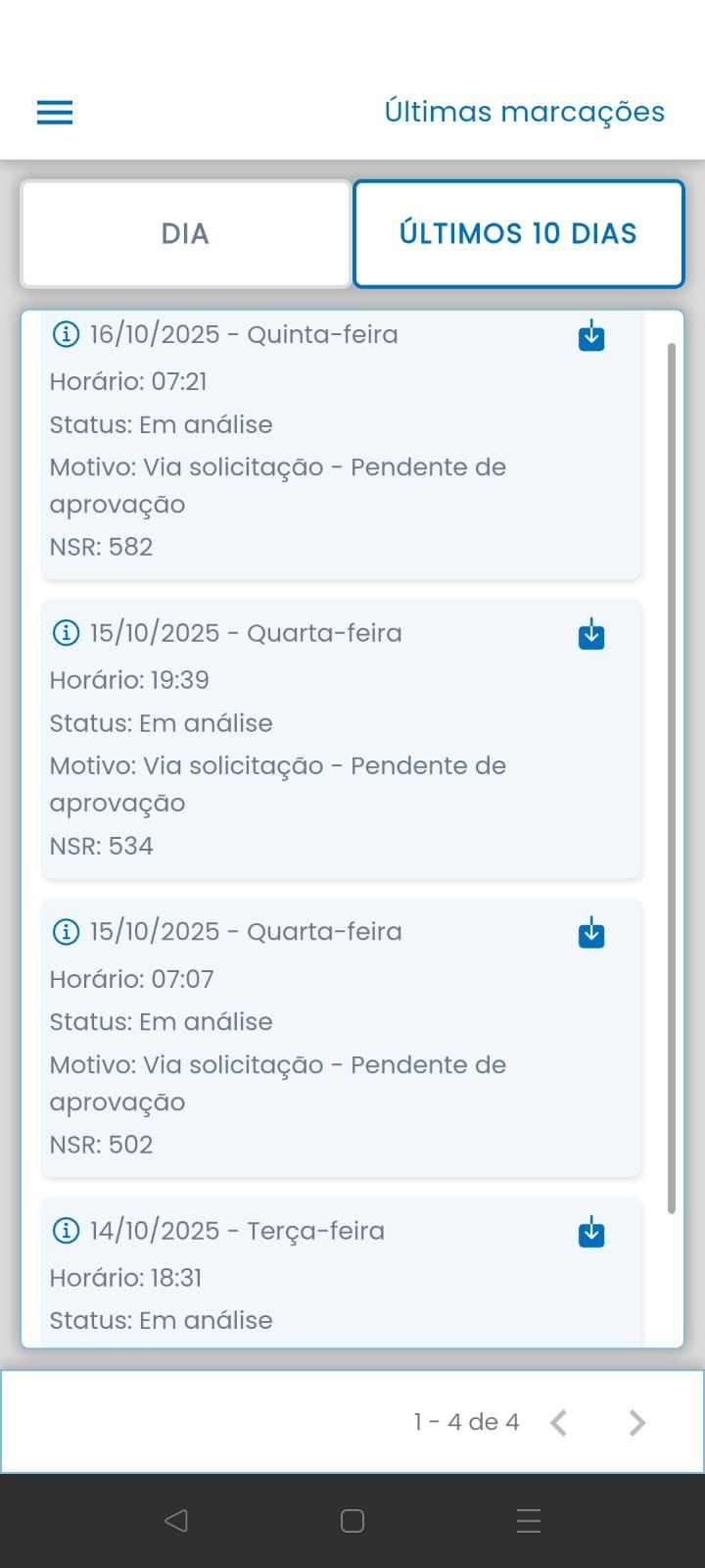 Ao registrar o ponto em um local que não esteja dentro da área limitada pela cerca, os registros de ponto ficarão com o status “Em análise”, sendo necessário que algum operador realize a aprovação dos mesmos.