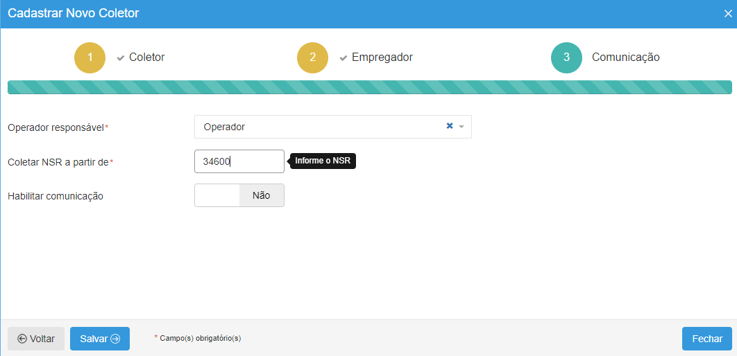 Etapas para preenchimento da aba “Coletor”: