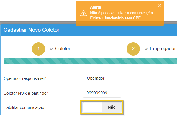 Atenção: a comunicação somente será ativada se todos os funcionários da empresa selecionada possuírem CPF cadastrado.