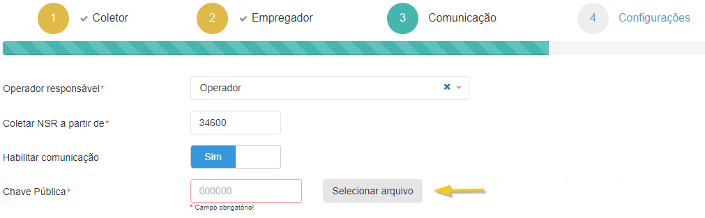 No cadastro de Coletor, “Passo 2 Empregador” selecionar a “Empresa”: