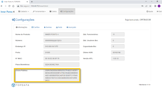 É importante observar que apenas os modelos da Topdata com firmware igual ou superior à versão 4.60.17 são compatíveis com o protocolo de comunicação nativo do TopPonto.