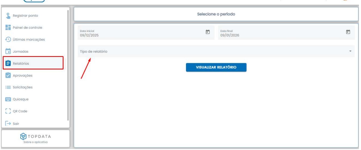Dentro do App (ou via mobile), ele poderá ser selecionado na opção “Tipo de relatório”, na opção Relatórios:
