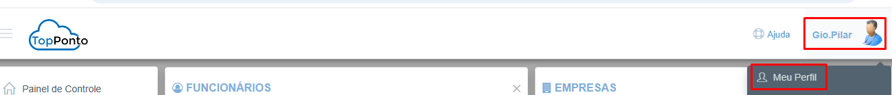 Para isso, clique no seu ícone de usuário e seleciona a opção MEU PERFIL: