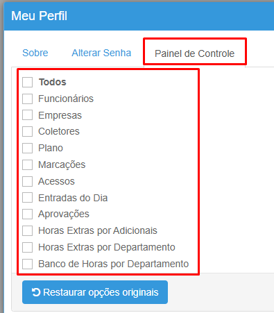 E então na aba painel de controle, selecione os itens que julgar necessário e estará pronto.