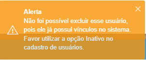 Caso contrário o sistema dará uma mensagem de aviso, informando que não é possível, pois esse usuário já possui vínculos no sistema.