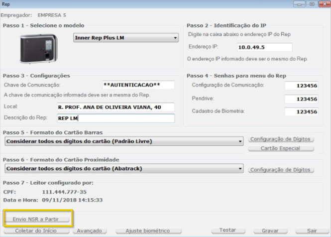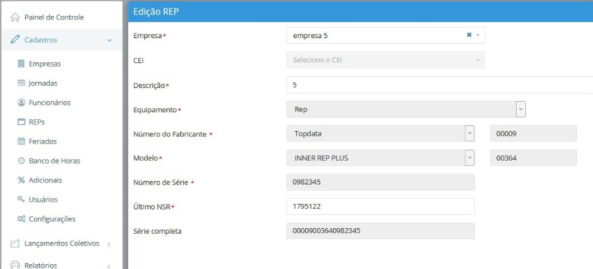 – Reps do Empregador: Rep que enviará os registros para o TopPonto;