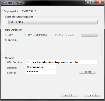 -Tipo Arquivo: Marcar como Nuvem (opção só ficará disponível após configurar o arquivo GerenciadorInnerRep.ini conforme o tópico 1);