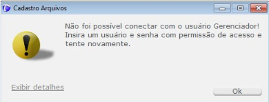 Conexão sem sucesso, revisar a URL, usuário e Senha: