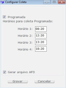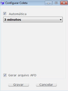 Coleta Programada: Pode ser habilitada em “Ferramentas”, “Configurar Coleta Automática” ou diretamente na aba “Coleta Automática”, clicando em “Configurar” é possível configurar para coletar os bilhetes nos horários pré determinados.