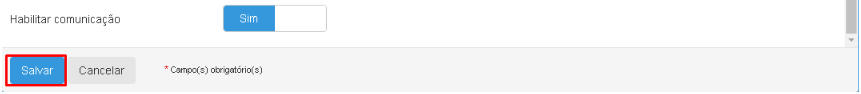 - Desabilitado: Opção “Habilitar comunicação” está desabilitada.