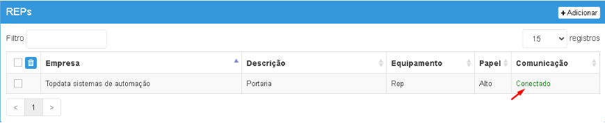 Na coluna “Comunicação” apresentará o status atual da comunicação com o equipamento, aguarde até que o status seja “Conectado“: