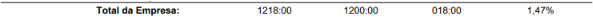 Para a empresa temos um total de 1218:00 horas normais previstas: