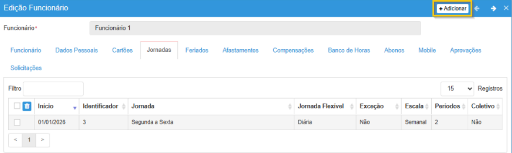 - Jornadas de trabalho: configuração das escalas e horários do funcionário.