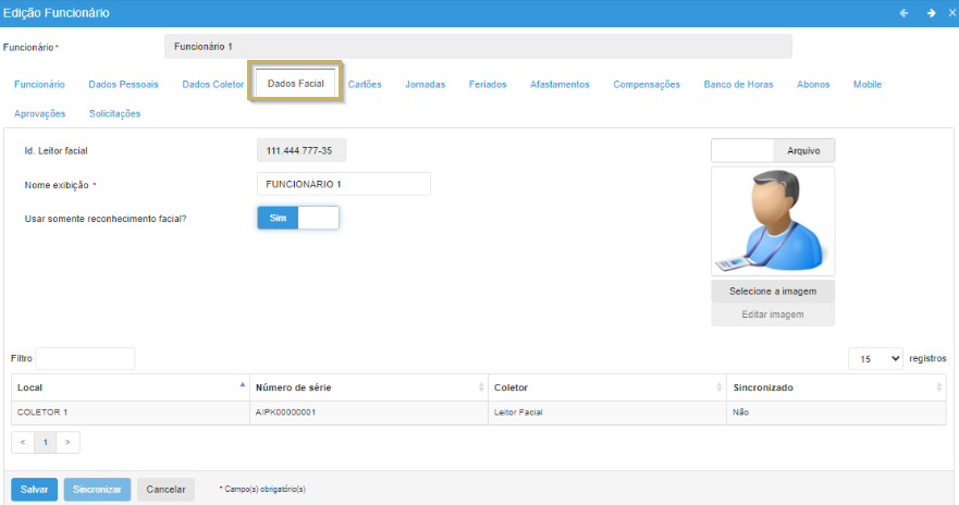 No cadastro de funcionários, é possível inserir a foto do colaborador de duas formas: