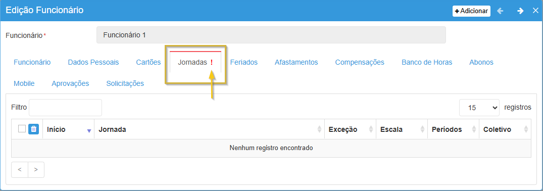 - Jornadas de trabalho: configuração das escalas e horários do funcionário.