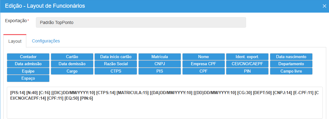 O TopPonto disponibiliza três layouts pré-configurados para exportação de dados de funcionários: