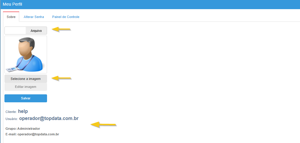 Sobre: Exibe os dados cadastrais do usuário logado.