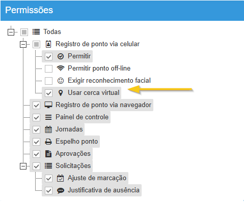 - A opção “Permitir registro de ponto off-line” não pode ser habilitada simultaneamente à funcionalidade da Cerca Virtual.