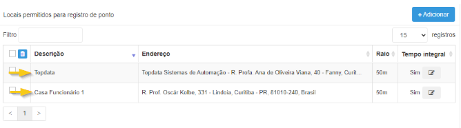 Para localizar endereços cadastrados, é possível utilizar o filtro. Essa é uma ótima opção quando há vários endereços cadastrados e você deseja encontrar um específico para atribuir ao funcionário.