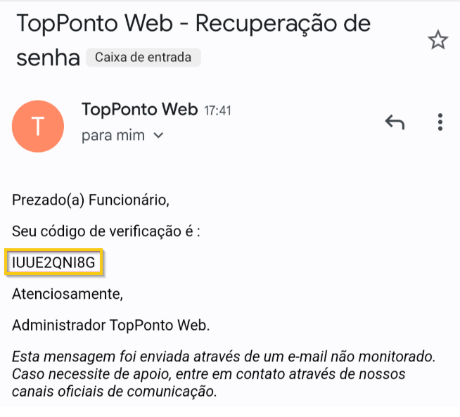 O preenchimento do campo e-mail no cadastro do funcionário não é obrigatório. Contudo, caso o colaborador esqueça sua senha, será necessário que ele entre em contato com o administrador do TopPonto da sua empresa para que a senha seja recadastrada.