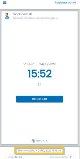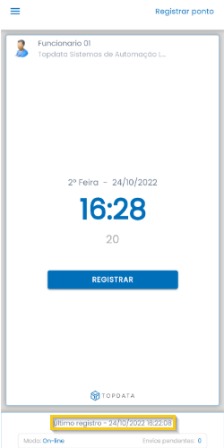 - Visualização da hora atual e do último registro efetuado na tela principal.
