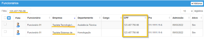 - CPF: Valor cadastrado na aba Funcionários, também pode ser usado para login.
