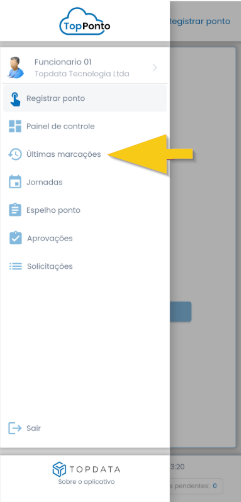 Na seção “Últimas Marcações”, é possível consultar os registros de ponto do dia atual e dos últimos 10 dias.