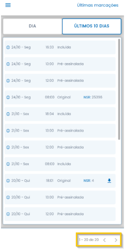 Também é possível consultar os registros de ponto dos últimos 10 dias: