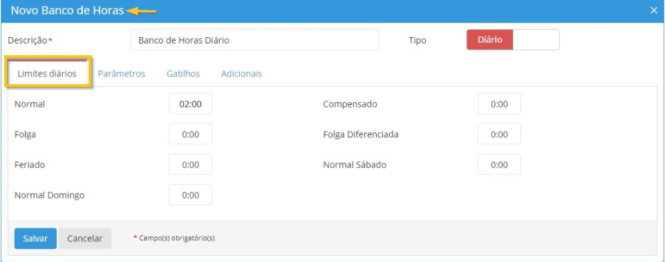 Banco de Horas configurado como “Diário”