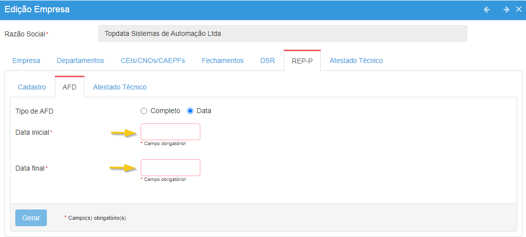 - Por Data: gera o arquivo apenas com registros dentro do período informado.