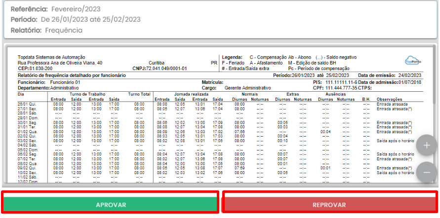 Então no APP TopPonto no Menu de aprovações poderá aprovar ou reprovar o relatório enviado.