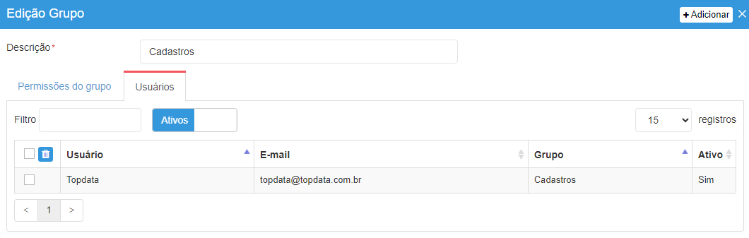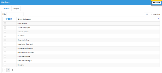Para criar um novo grupo de acesso, clique no botão “Adicionar”.