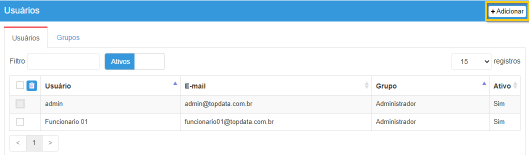 Para incluir um novo usuário, clique no botão “Adicionar”.