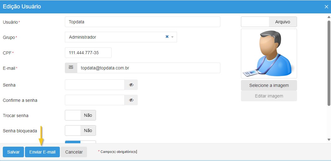 • E-mail: informe o endereço de e-mail do usuário, utilizado para notificações e comunicações do sistema.